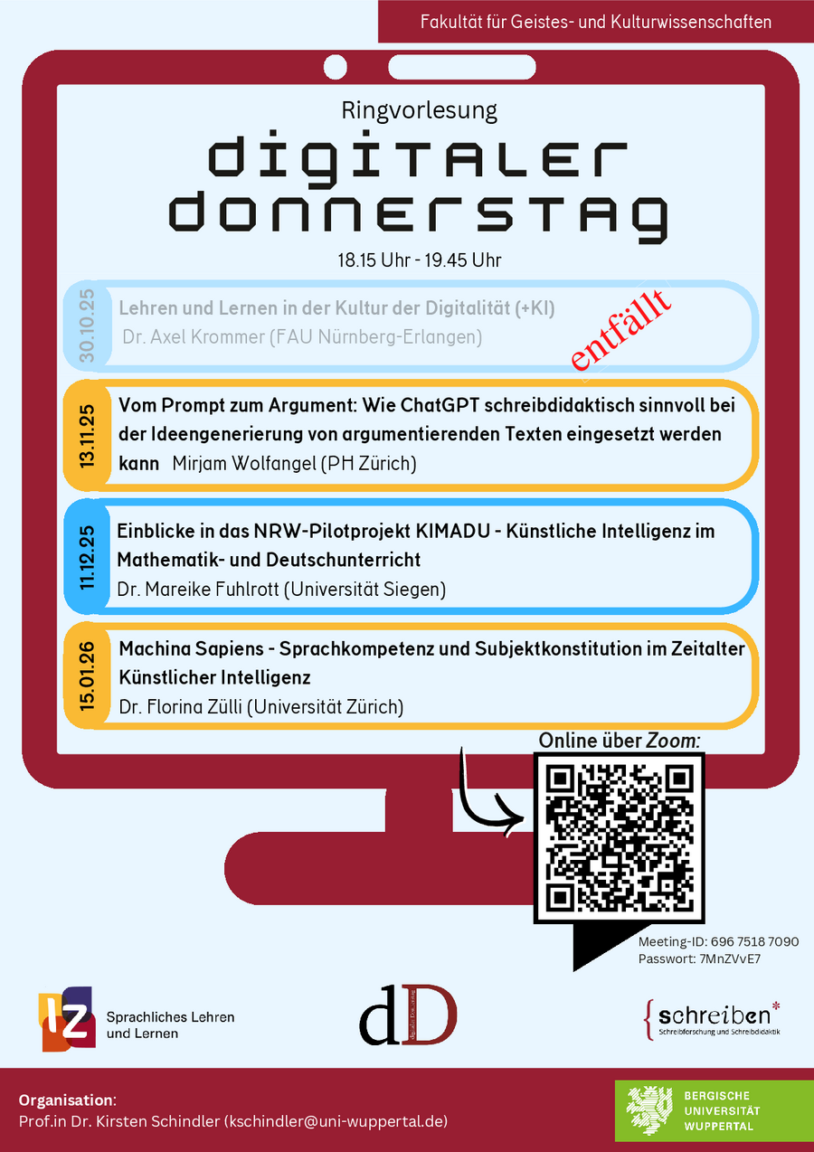 Die Ringvorlesung "Digitaler Donnerstag" im Wintersemester 2025/2026