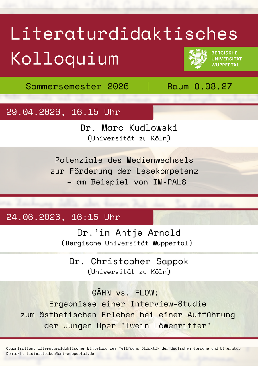 Literaturdidaktisches Kolloquium im SoSe 2026