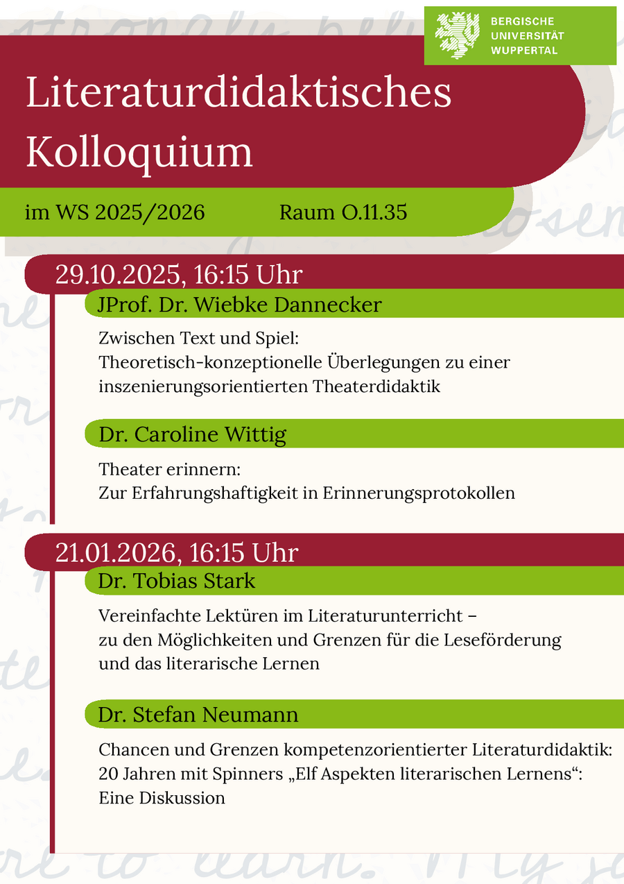 Literaturdidaktisches Kolloquium im WS 2025/2026